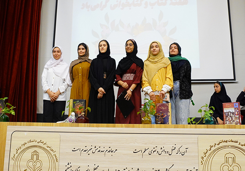 به مناسبت بزرگداشت سی و سومین دوره هفته کتاب و کتابخوانی 1404 با شعار (بخوانیم برای ایران)، به همت سرکار خانم شاه نظر (مسئول واحد کتابخانه دبیرستان دخترانه دوره اول علوم پزشکی شیراز) و با هدف تشویق و ترغیب دانش آموزان علاقه مند و مشتاق به امر نویسندگی و همچنین تقدیر از همکاران، والدین و دانش آموزان مولف؛ نشست کتابخوان مدرسه ای برگزار و از تالیفات این عزیزان در سالن همایش های این آموزشگاه رونمایی گردید. در این مراسم که با استقبال گرم دانش آموزان مجتمع و حضور رئیس محترم مجتمع و معاونین حوزه مرکزی، مدیران و همکاران مدارس مجتمع و همچنین حضور سرکار خانم صفری راد (رئیس اداره کتابخانه های عمومی شهرستان شیراز)، جناب آقای پروفسور پروین (پژوهشگر، نویسنده و استاد دانشگاه) و سخنرانی جناب آقای امید مسعودی (فعال فرهنگی، نویسنده، شاعر و مجری تلویزیون) همراه بود از کتب تالیف شده توسط خانمها (سیده فاطمه گلشنی، دکتر زینب طالب زاده، پریسا پیغان، راضیه مینایی، بیتا رضایی و سمیرا جدی) در بخش همکاران و از کتب تالیف شده توسط (خانم دکتر الهام موسویان و آقای دکتر علیرضا تهور) در بخش والدین و همچنین از کتاب تالیف شده توسط خانم (ترمه حدائق) در بخش دانش آموزی رونمایی گردید.اکران نمایش و اجرای سرود دانش آموزی با محوریت کتاب و کتابخوانی و همچنین اجرای سرود ای ایران با اجرای آقای امید مسعودی، اجرای نوازندگی توسط دانش آموزان و پخش تیزر هفته کتاب از جمله برنامه های دیگری بود که برای حاضرین در این نشست گرم و صمیمی به اجرا در آمد.